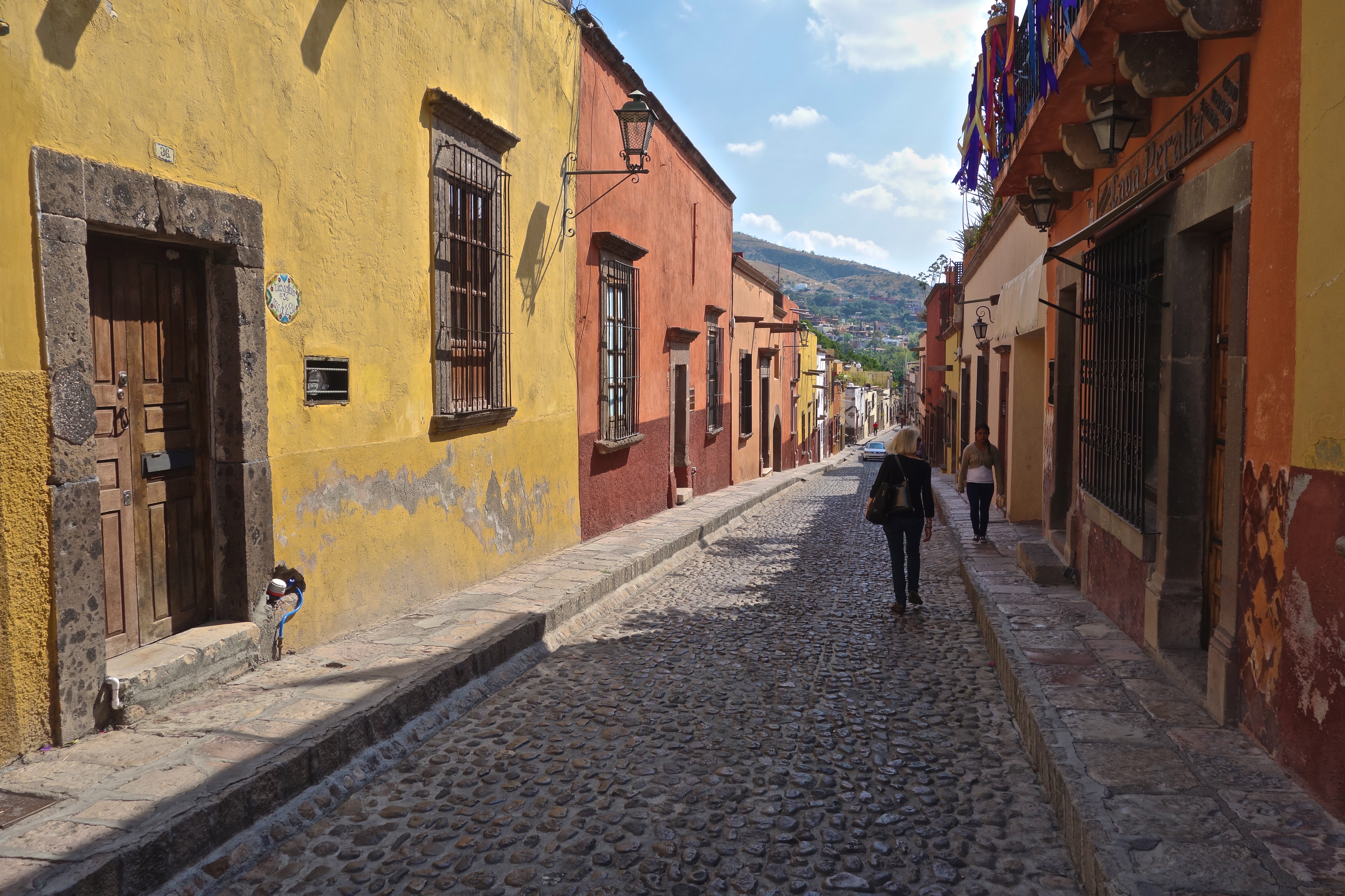 San Miguel alone was worth the trip to Mexico. It is a small Colonial town named after a Franciscan monk and a hero of the Independence. At 7000 feet it is blessed with pleasant, dry and moderate temperatures. The streets are narrow, all cobblestone and hilly. Huge churches, active plazas, colorful buildings, interesting markets, copious art galleries and safe streets make this a pedestrian paradise.