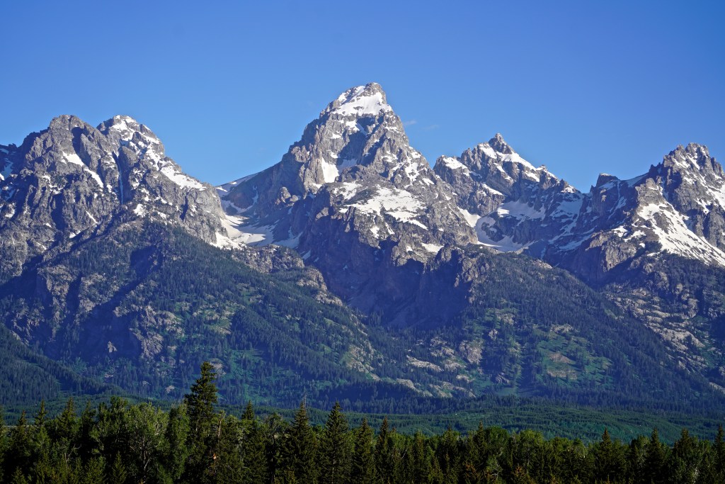 From Kanab, we went to Ogden, Ut., Idaho Falls and then to Jackson Hole … a place of which I never tire. When we left Jackson we had a magical early morning drive along the Grand Teton Mountains. If you have not seen the Tetons … put it on your bucket list now. Always looking for animals, we spotted a moose … with my 400mm lens I captured a pretty decent shot (shown in the above slides).