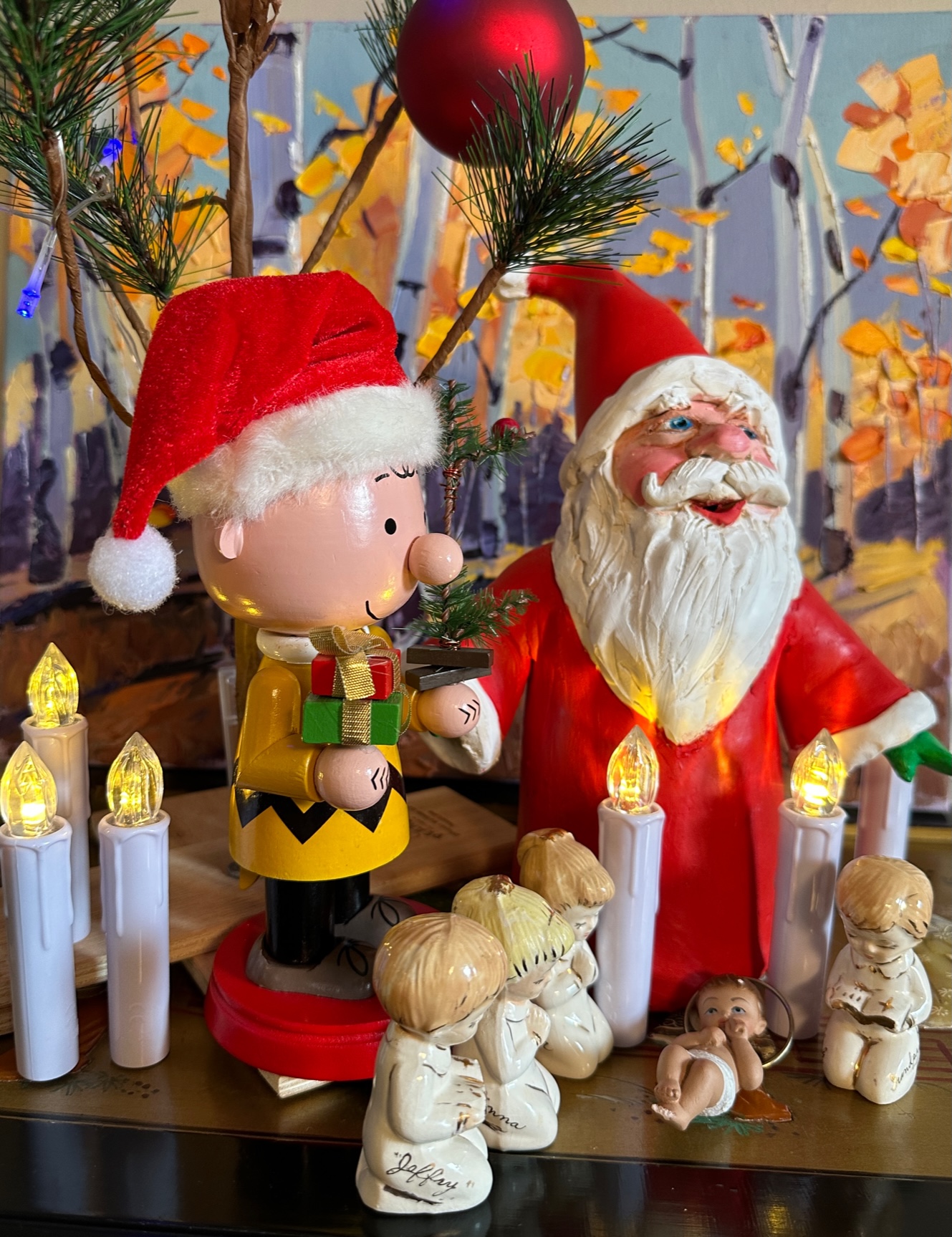 Our big tree in the foyer … DJ, Laura, Jeff, DonnaNeighbors help Patti load our freshly cut native Pine tree. I could not end this blog entry without mention of Charlie Brown . First there is Jesus and His Birth, then there is family … kids, grands, etc. Then there are the symbols.The photo above pretty well covers the bases. Just like Santa, Charlie Brown represents for me a spirit of love, fun, friendship, family and Peace on Earth. Christmas lights represent that spirit as well … so Here goes … I HATE TO SEE THE CHRISTMAS LIGHTS COME DOWN. Maybe we need a worldwide year of Christmas lights everywhere to remind us of our shared humanity and the need to be a light in the lives of others … that includes candidates, governments, businesses, races, genders, neighbors, families, etc … Everyone!!