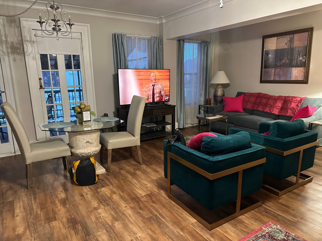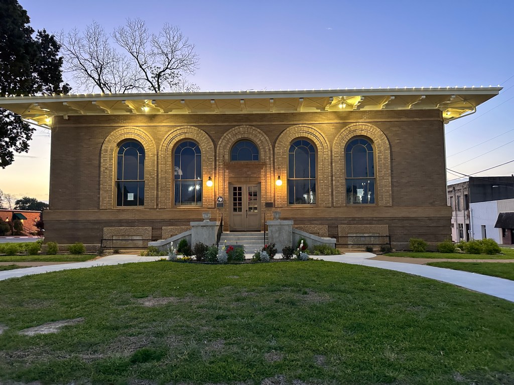 The Redlands Hotel is a piece of art in itself. For forty years the owners have poured their hearts into restoring this downtown Palestine historic masterpiece. Living area in our suite. The “Queen” Dining Room.A Carnegie Library