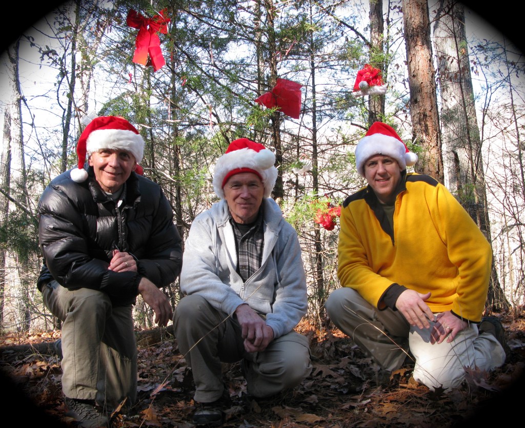 Jim, JC, Bryan were camped in the Richland Creek Arkansas Wilderness years ago when JC pulled out three glow sticks. His wife, Gwen told him “you’ll find something to do with these”. We did … a scraggly Cedar Tree and, at that moment, Charlie Brown Christmas Campout was born.
